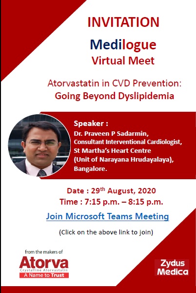 - ‘Atorvastatin in Dyslipidemia – Going beyond Dyslipidemia’, Webinar organised by Zydus, 29th Aug 2020 (Link).