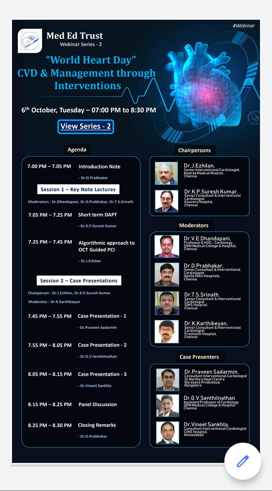- ‘Appearances can be deceptive’ – invited speaker (Webinar) for the ‘World Heart Day – CVD Management through Interventions by Med Ed Trust’, Chennai, 6th Oct 2020 (Link).