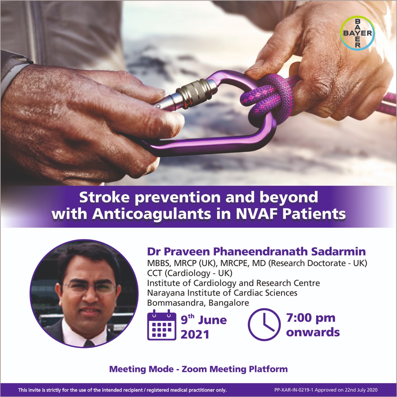 - Stroke prevention and beyond with anticoagulants in NVAF patients – invited speaker (Webinar) to Cardiologists & Physicians organised by Bayer, 9th June 2021 (Link).