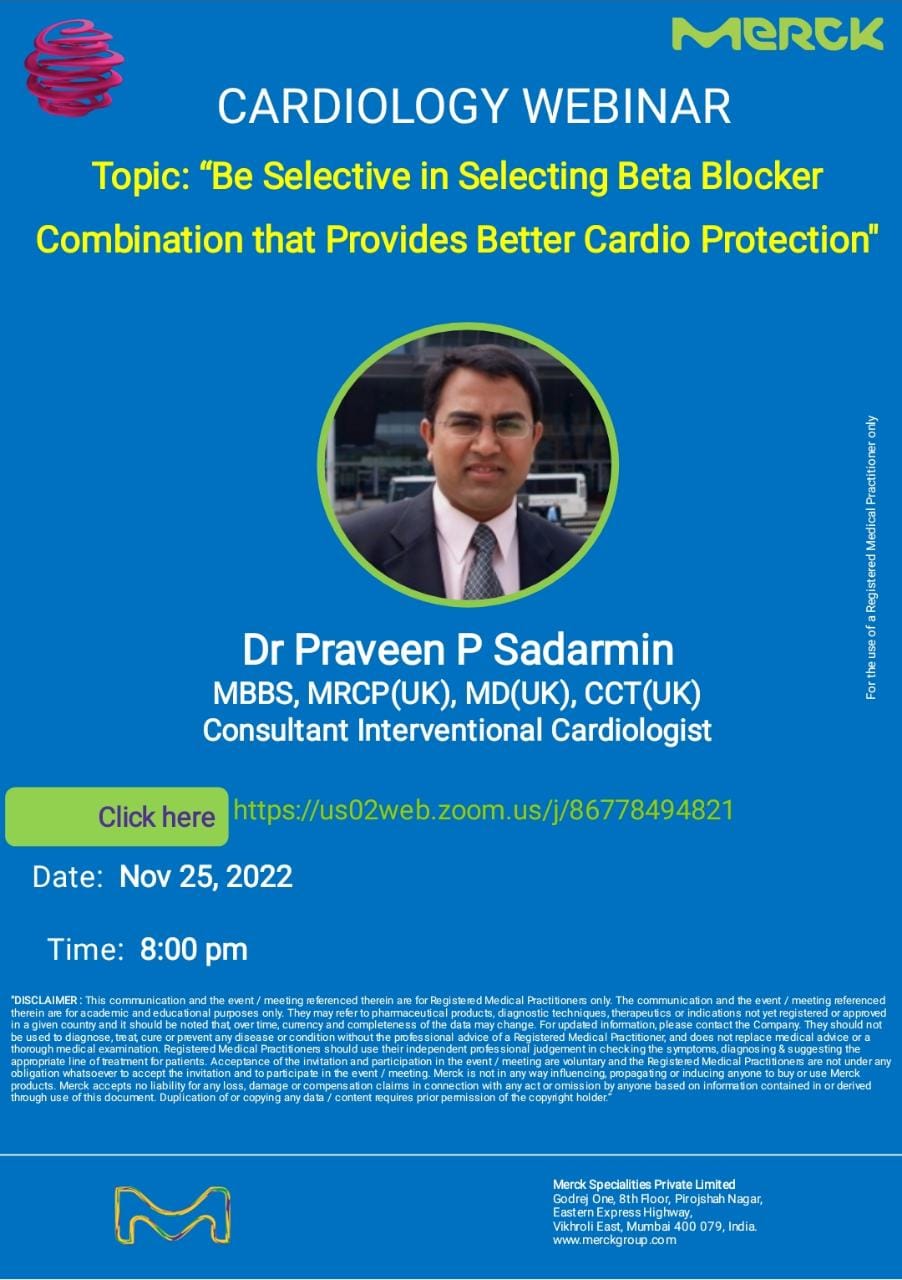 - Be Selective in selecting Beta Blockers – invited speaker for CME Webinar by Merck, 25th Nov 2022. (Link)