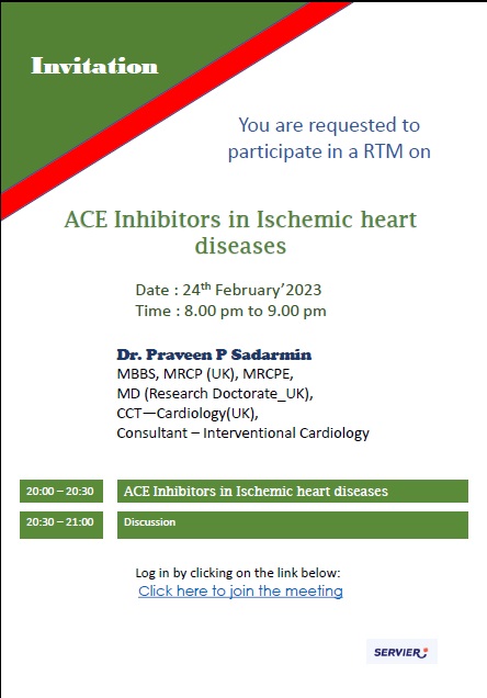 - ACE-Inhibitors in Ischaemic Heart Disease – invited speaker for CME Webinar by Servier, 24th February 2023. (Link)