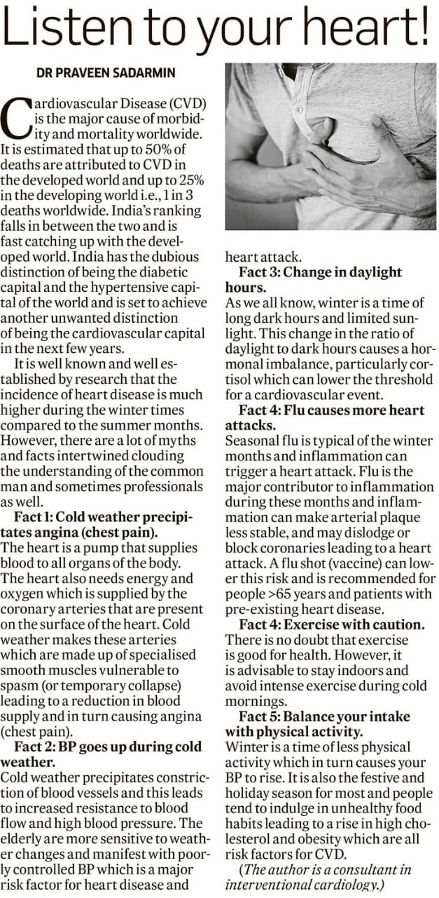 “Winter Wellness: Strategies to safeguard your heart health in cold temperatures” published in Times of India as Photo Story, 9th January 2024. (Link)